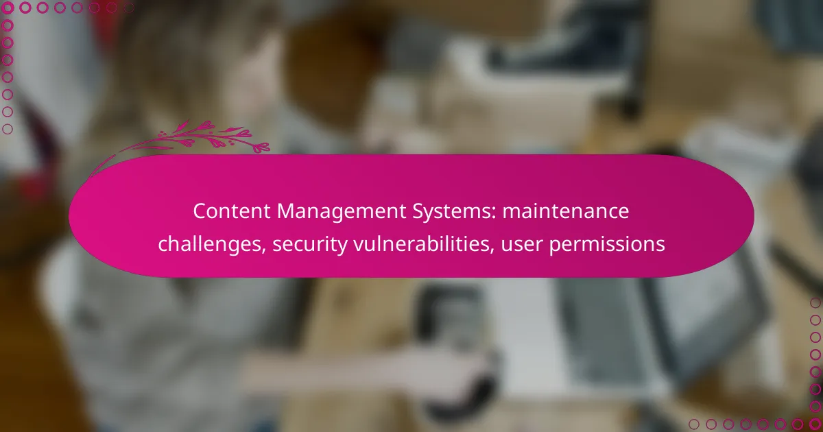Content management systems (CMS) are essential tools for managing digital content, but they come with significant maintenance challenges that can affect their performance and security. Addressing issues such as regular updates, data backups, and user training is vital to safeguard against vulnerabilities. Additionally, managing user permissions effectively is crucial to ensure both security and operational efficiency within the CMS environment.