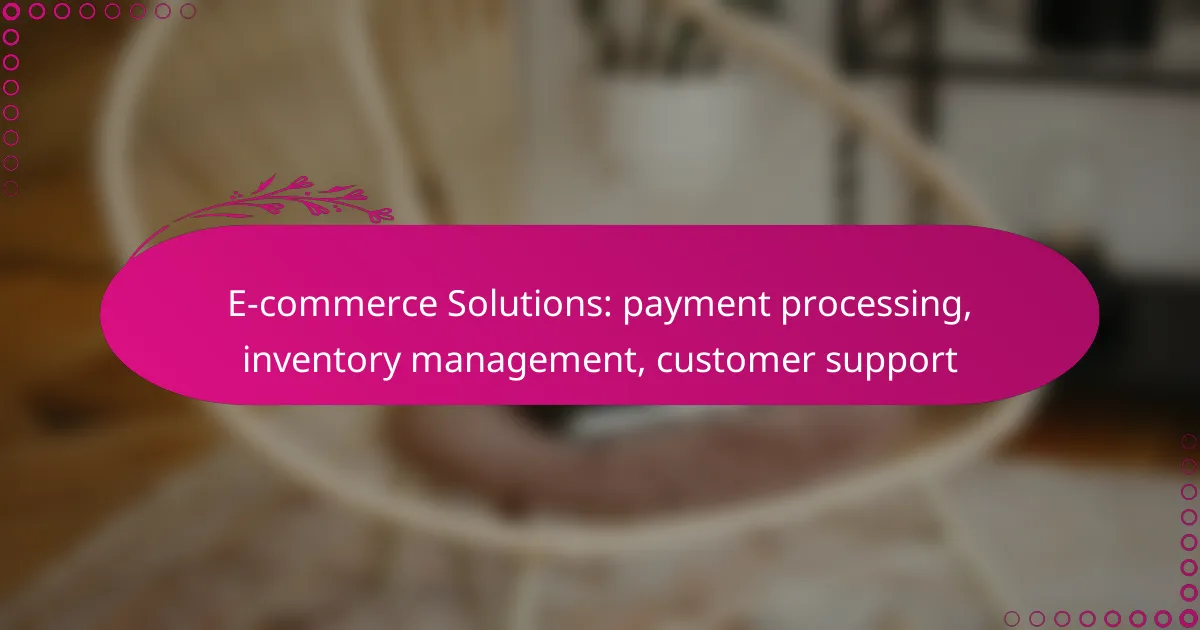E-commerce solutions encompass essential components such as payment processing, inventory management, and customer support, all crucial for online business success. Effective payment processing platforms like PayPal and Stripe facilitate secure transactions, while robust inventory management tools enhance stock control and order fulfillment. By integrating these solutions, businesses can streamline operations and improve customer satisfaction.